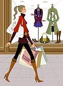 blond hair, boot, carrying, cartoon, casual clothing, city life, clipart, clothing store, color, color image, colour, computer graphics, consumerism, day, digitally generated image, fashion, female, footwear, full length, graphics, hand bag, heels, high heels, illustration, in front of, lifestyles, long hair, mannequin, merchandise, motion, on the move, one person, one woman only, outdoors, ponytail, profile, retail, retail therapy, shopping, shopping bag, side profile, side view, spending money, store, vector, vertical, walking, window, window display, woman, arkistokuvitus, julkaisuvapaat kuvitukset, arkisto clip art -kuvake, arkisto clip art -kuvakkeet, logo, viivataide, EPS-kuva, kuvat, grafiikka, grafiikat, piirustus, piirustukset, vector-kuva, taideteos, EPS vector taide, taidevedokset, vedos, juliste, julisteet, muraali, seinämuraalit, u10862818